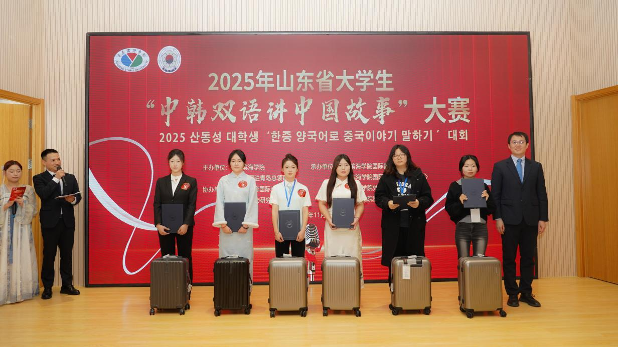 在近日落幕的山东省大学生“中韩双语讲中国故事”大赛中,我校国际教育学院大数据与会计专业学生吕昀笑凭借出色的中韩双语表达能力与对中国文化的深刻解读,荣获大赛三等奖。