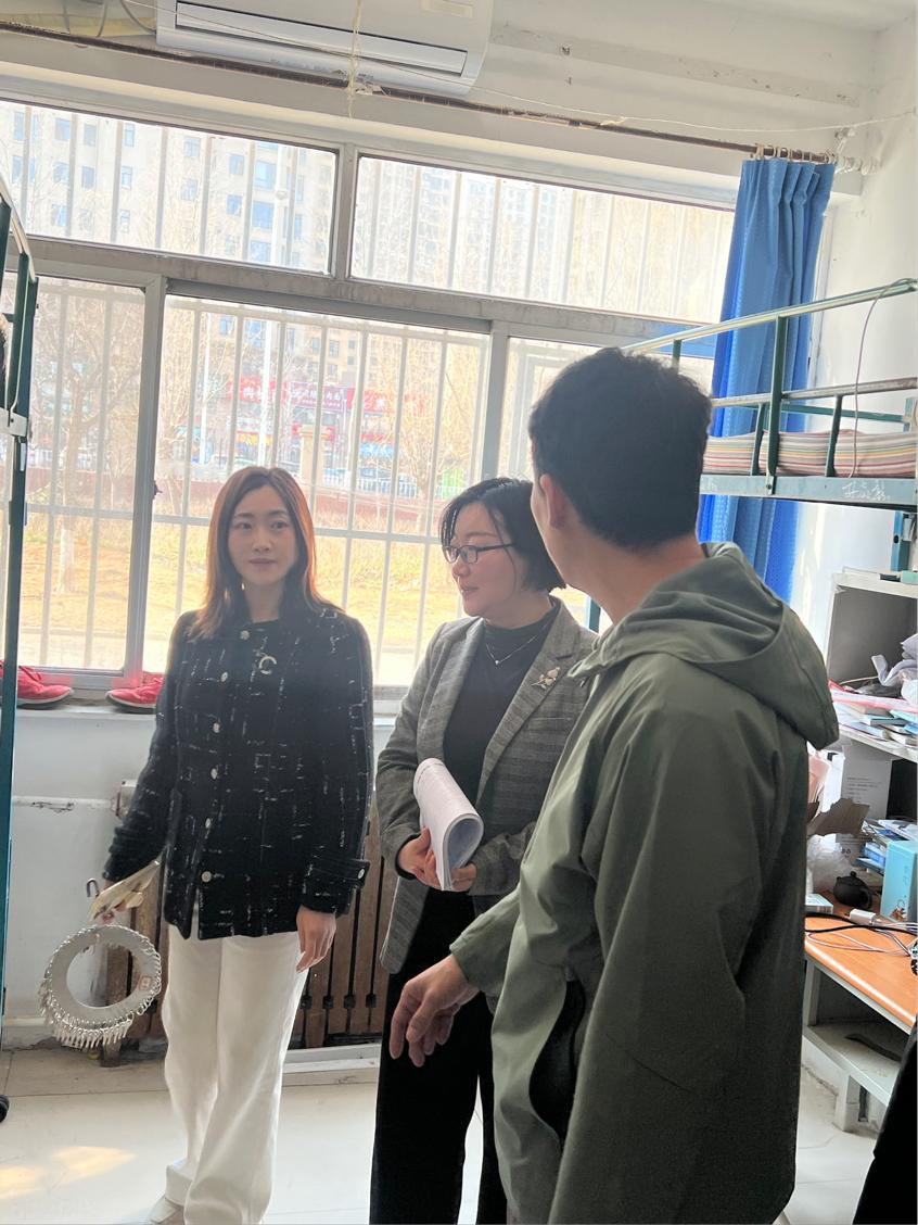 随后,学院领导与班主任团队逐栋逐层、逐间走访学生宿舍,与同学们亲切交流,细致询问假期生活、返校行程、新学期学习规划及生活适应情况,耐心倾听学生在学习、生活中遇到的问题与诉求。于丽方书记叮嘱同学们要迅速调整状态,收心聚力投入新学期学习生活,严格遵守宿舍管理规章制度,养成规律作息、整洁卫生的良好习惯,勤通风、重防护,共同维护安全、文明、温馨的宿舍环境。